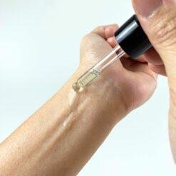 เทเนื้อออยล์ใส่มือในปริมาณที่พอดี ลูบเนื้อออยล์ลงบนผิวให้ทั่ว