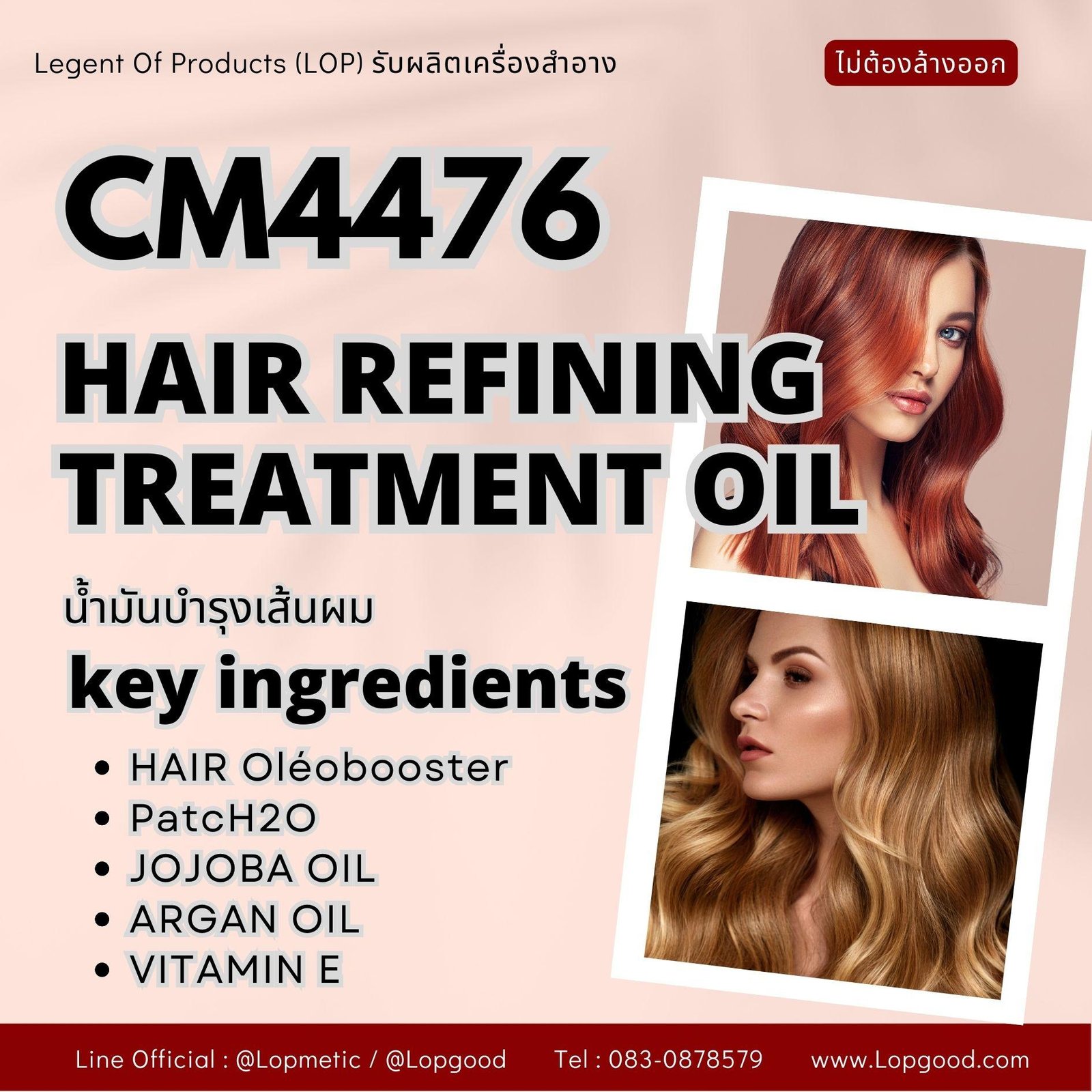 CM4476 รับผลิต HAIR REFINING TREATMENT OIL รับผลิตน้ำมันบำรุงผม สูตร HAIR Oléobooster และ PatcH2O