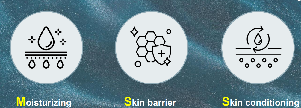 Skin Barrier : กระตุ้นการสร้างเซลล์ใหม่, เพิ่มความยืดหยุ่นให้แก่ผิว, ลดการระคายเคือง, เพิ่มการเกาะติดบนเคราติน