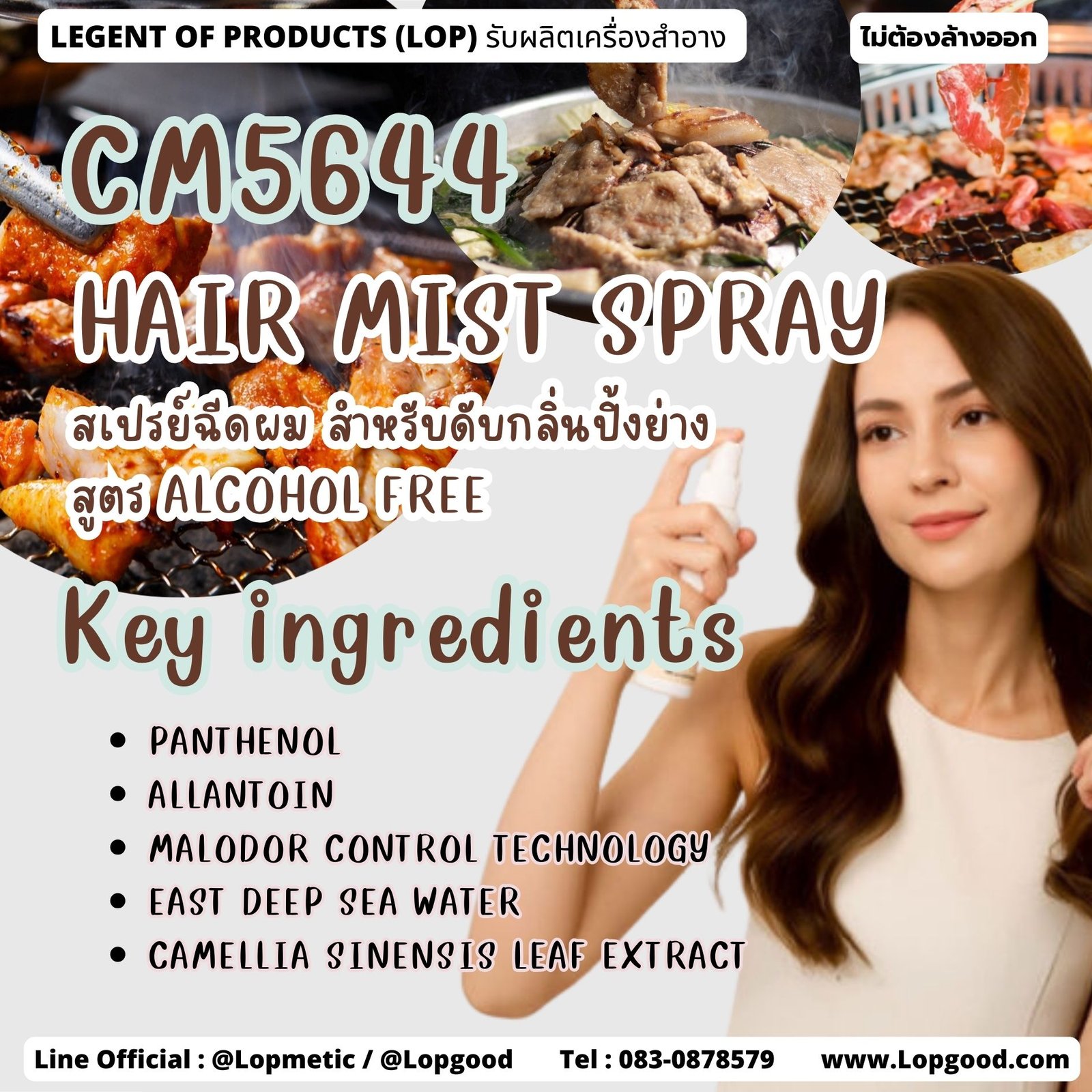 รับผลิตHAIR MIST SPRAY รับผลิตสเปร์ยฉีดผม สำหรับดับกลิ่นปิ่งย่าง สูตร ALCOHOL FREE