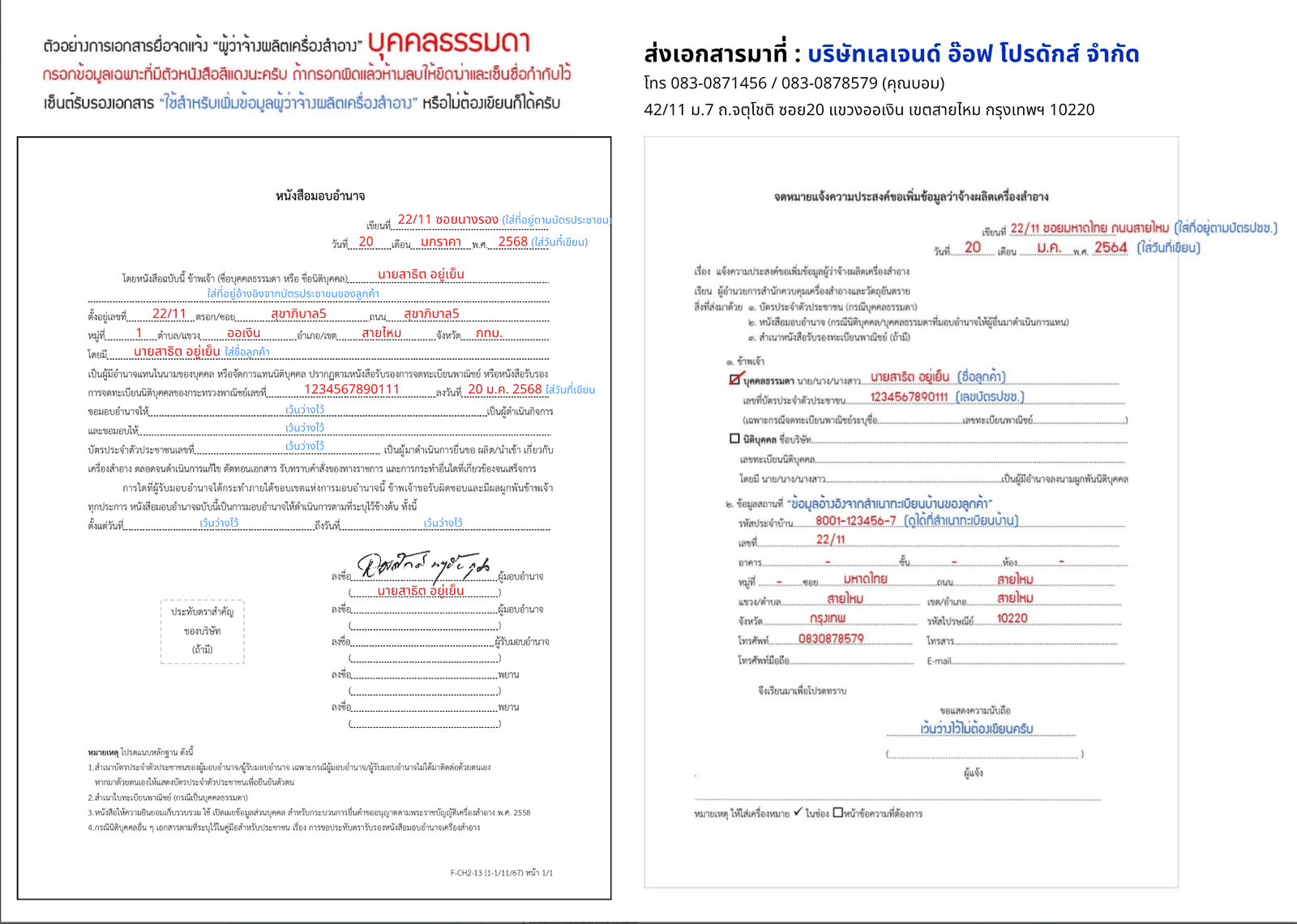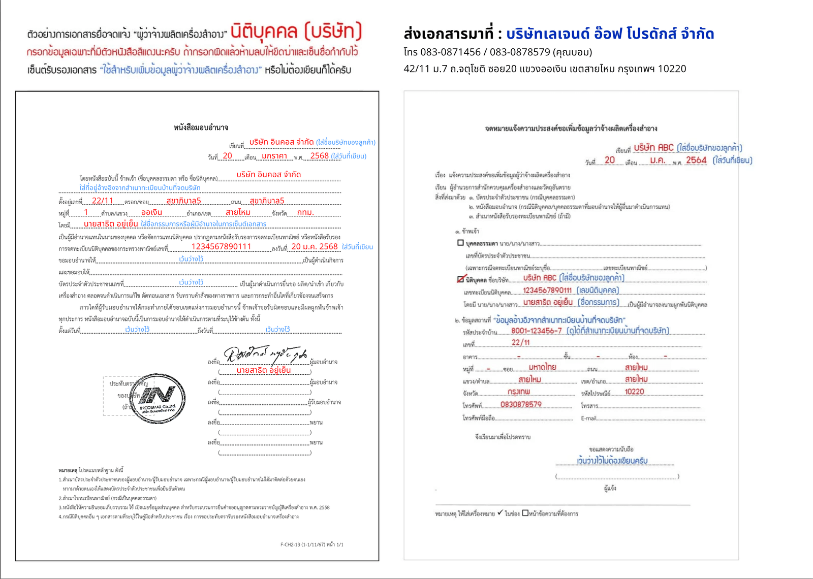เอกสารที่ต้องกรอกสำหรับยื่นผู้ว่าจ้างผลิต