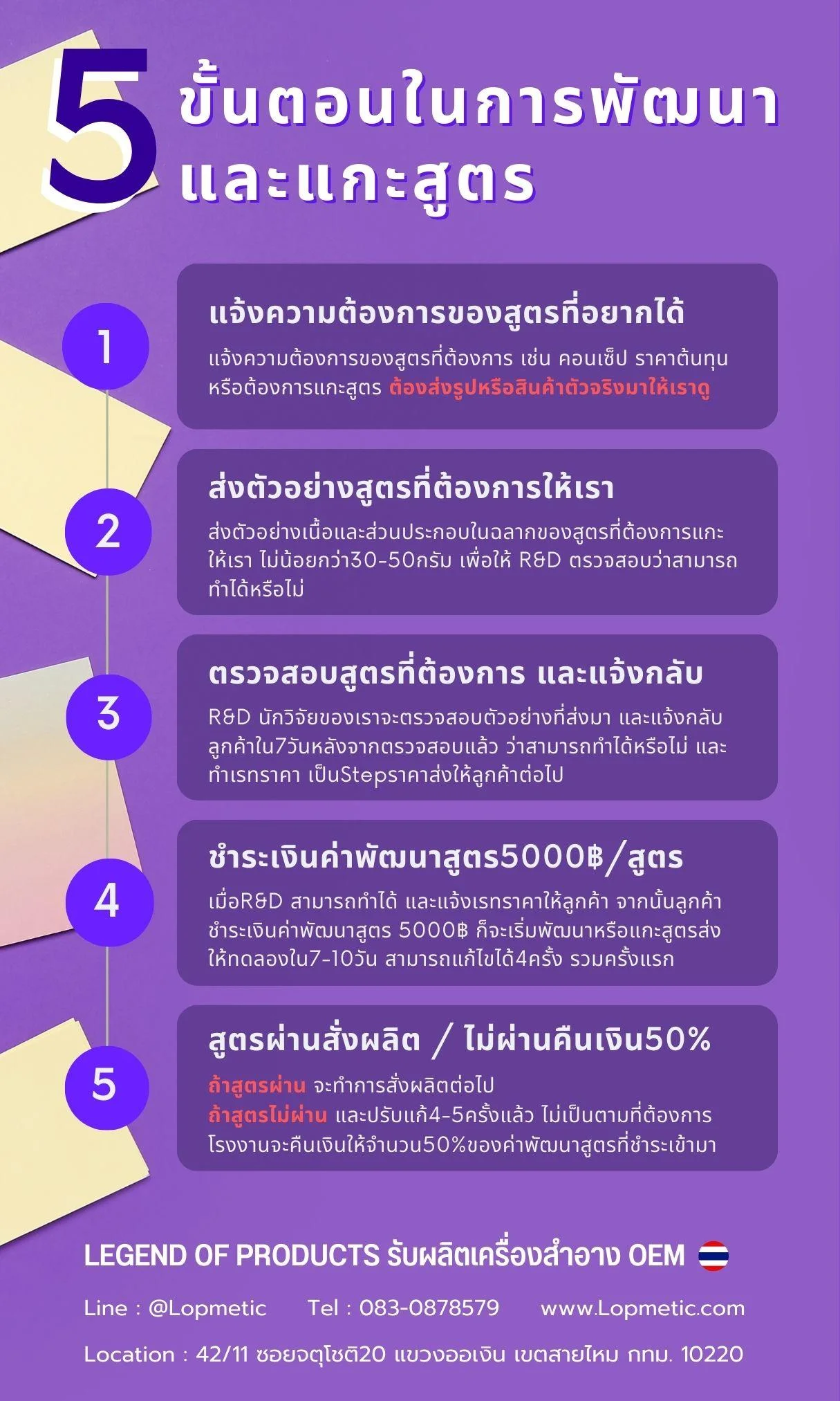 - ฟรี พัฒนาสูตรใหม่ (จ่ายมัดจำ5000บาท จะได้เป็นส่วนลดเมื่อสั่งผลิต)