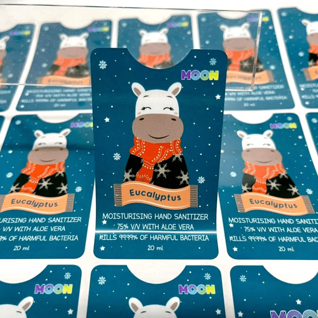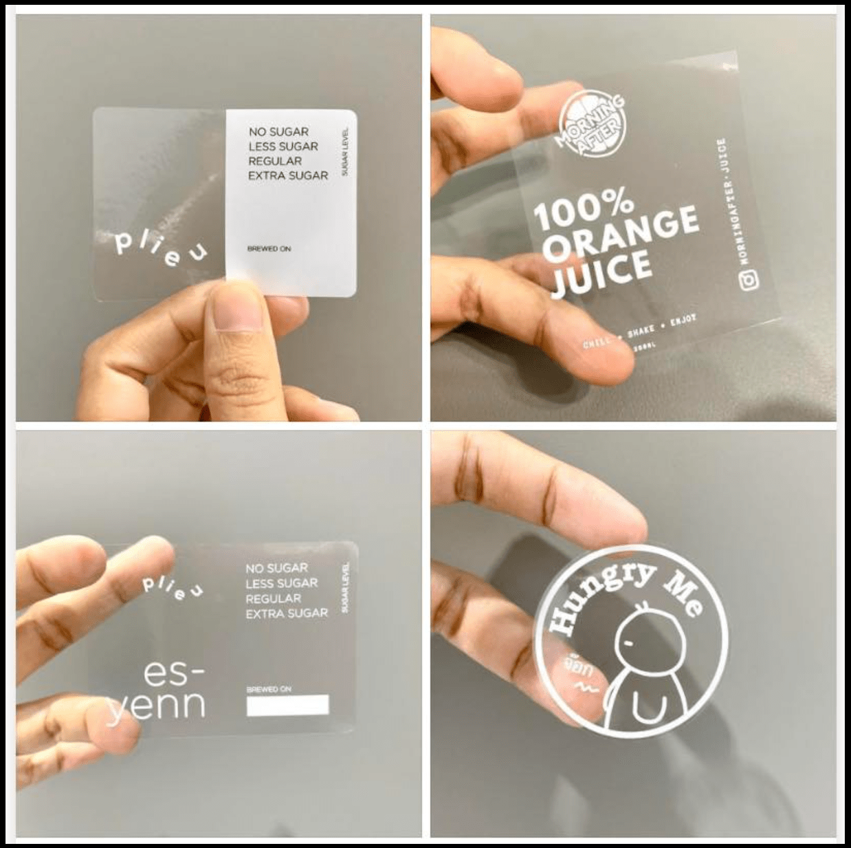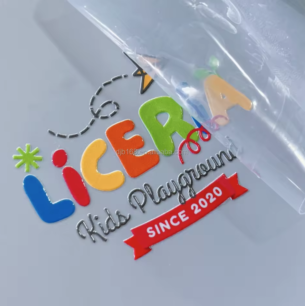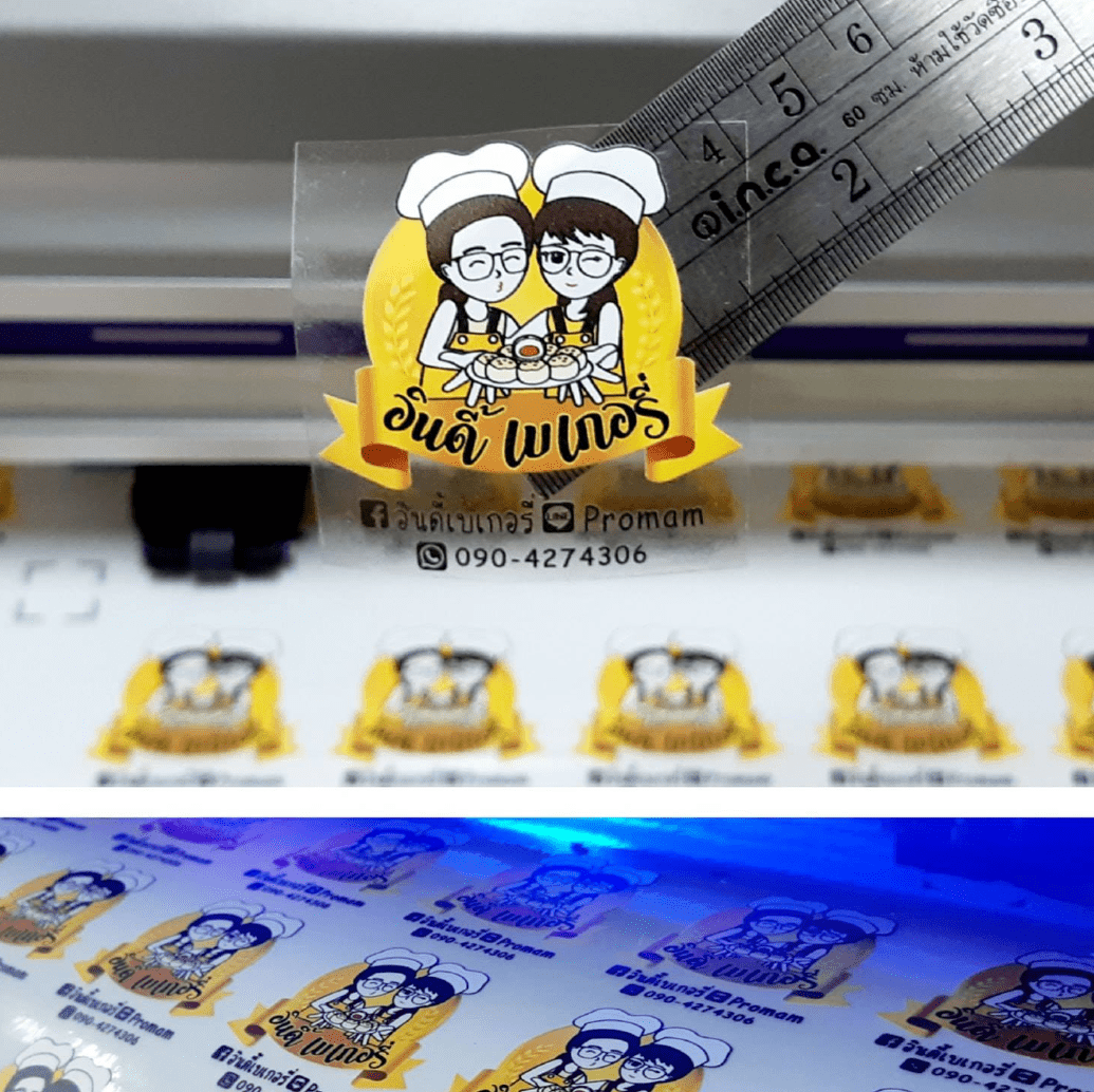 4.PVC พิมพ์UV ฉลากสติกเกอร์ พื้นใสและพื้นขาว รองพื้นด้วยหมึกขาว